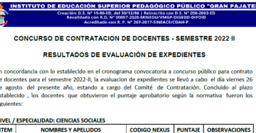 Contrato docente 2022 – II. Resultado de la evaluación de expedientes